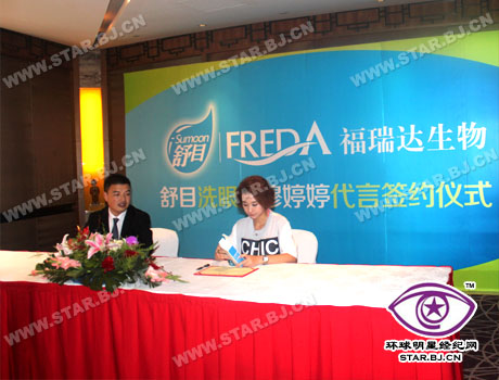 穆婷婷签约现场展示舒目产品