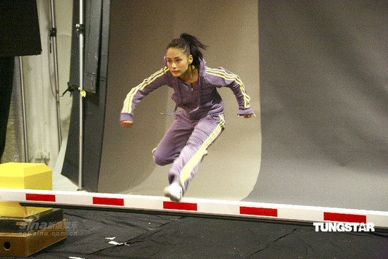 阿娇换上系列服装摄影棚内拍摄她最拿手的跨栏动作。在拍摄时,阿娇不惜跨栏逾百次,务求让导演捕捉到她最完美起跳的一剎那。广告照中的亚娇穿起紫色运动服时型格十足,配合其充满自信的眼神和敏锐的动作,英姿勃发,透过照片将品牌理念完美演绎出来。