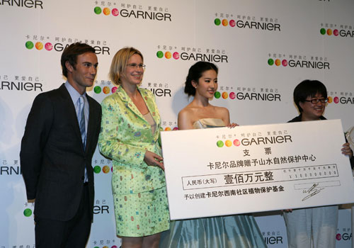 2008年10月16日,欧洲天然护肤领先品牌卡尼尔携手山水自然保护中心,在上海共同宣告“呵护绿色,关爱自然”--中国西南地区“植物与社区”保护项目的合作正式开展。活动现场,更邀请卡尼尔全新品牌形象代言人刘亦菲小姐共同启动了中国第一个由企业支持的社区植物保护基金--卡尼尔社区植物保护基金。此基金旨在资助中国西南乡村社区植物保护工作;促进植物保护不同领域之间的交流和协作,从而长远、有效地保护中国西南地区丰富而珍贵的植物资源。这个盛大、绿色、意义非凡的活动也预示着卡尼尔2009年的全新启航。