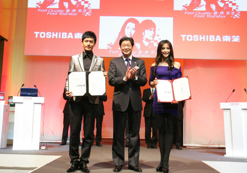 东芝中国总代表田中孝明与代言人合影