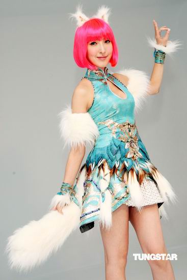 而杨谨华扮的“狐妖”造型,是自游戏里的人物改造而成。杨谨华桃粉色的利落短发、俏皮的狐狸耳朵,以及微露酥胸的性感小洋装,完全让以“成熟知性”着称的败犬女王杨谨华,瞬间变身为俏丽可爱的性感小狐狸,让大家惊艳不已,杨谨华自己也非常满意,她笑说:“现在才知道我也有可爱的一面吧!”