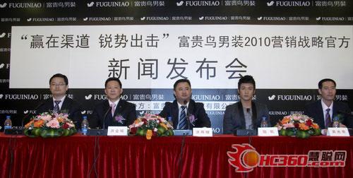 4月16日,国内著名男装品牌——富贵鸟男装在时尚之都厦门,成功举行以“赢在渠道锐势出击”为主题的2010秋冬新品发布会。富贵鸟集团相关领导、富贵鸟男装上千名经销商和上百家供应商出席了本次发布会。国内当红影视巨星、富贵鸟男装品牌形象代言人陆毅先生也亲临现场,为富贵鸟加油助阵。此外,大会还吸引了国内30多家媒体在第一现场报道了发布会的盛况。