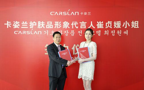 3月1日,在中国热播韩剧《传闻中的七公主》中成功演绎罗美七一角的韩国影视明星——崔贞媛小姐亲自来到广州签约卡姿兰代言人,崔贞媛在韩国凭借精湛演技而获得超高人气,多次荣获优秀演技大奖。她优雅、美丽的时尚气质和水润美肌完美诠释了该护肤品坚持的智美时尚主张。崔贞媛透露影视及平面广告3月中将展开拍摄,希望能尽快和中国观众分享。